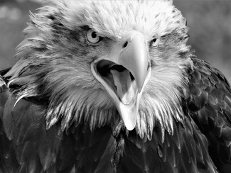 Sandy ScottUSAHonorable Mention "A very serious looking owl heading my way!" I got this shot of a Eurasian Eagle owl heading directly towards me and making serious eye contact! |