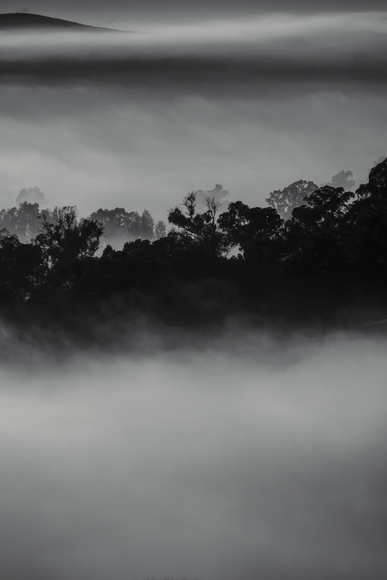 Mother Nature delivers a scene of inky blackness contrasted with gently lit heavy fog.