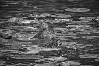 Leif SohlmanSwedenNominee "Mother and daughter?" Mother and daughter? BW The mother mallard duck took her little baby daughter to the water of creek of city Enkoeping Enkoping, for the first time. The little duckling first was a bit afraid of the wa |
