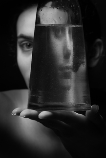 Ann Elliott CuttingUSANominee "Woman Looks Through Oil" Woman looking through a bottle of oil. |