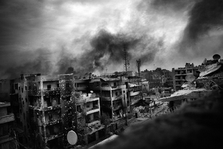 Maysun A. Spain Nominee "Hell on Earth. Syrian Civil War" Smoke billows over shelled and destroyed buildings, by Syrian Army artillery shelling, in Saif al Dawle district, Aleppo, Syria, 02/10/12. |