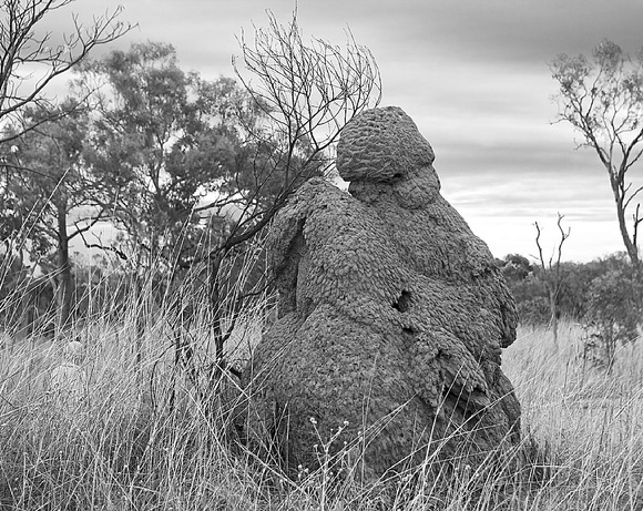 Giant Ant Hills are prolific in the Kimberleys, you see a man to the left in the grass.