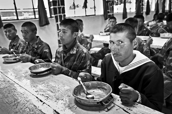 The young sailor at lunch in the canteen at the Bolivian Navy in San Pedro de Tiquina on Lake Titicaca.